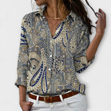 The Lumia – Classic Paisley Blouse is a bold yet timeless piece that blends intricate print with a tailored silhouette. Perfect for creating elegant everyday outfits, this blouse pairs beautifully with jeans, trousers, or skirts for a refined, expressive look.